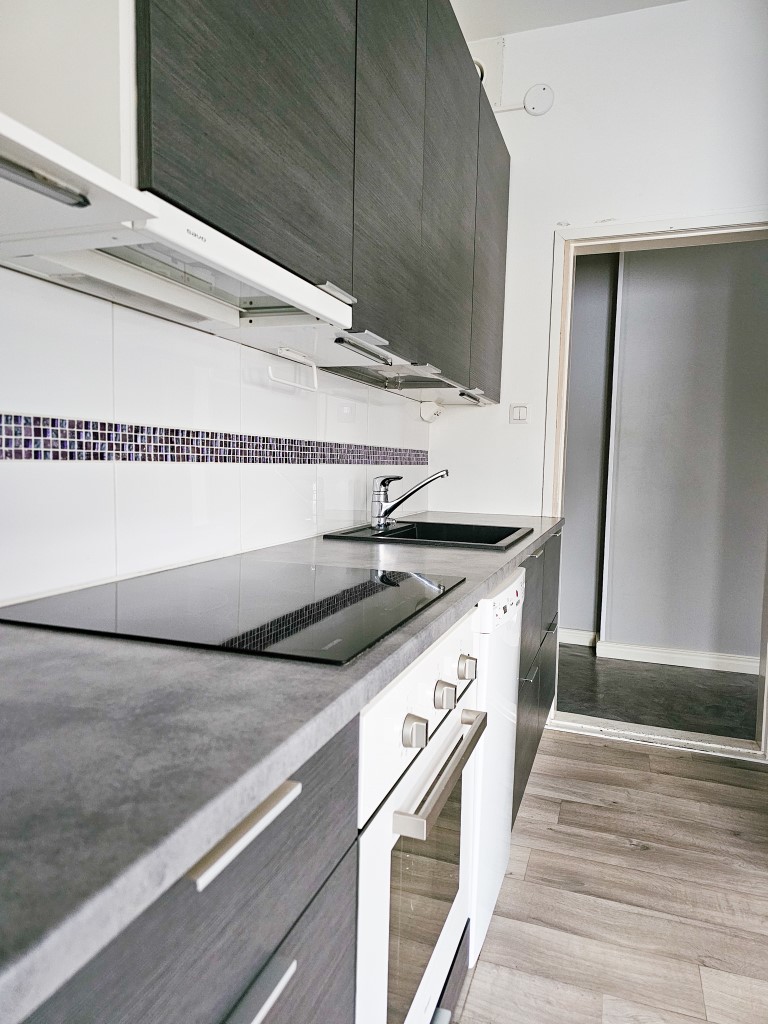KEITTIÖN KUVAUS: Jääkaappi/pakastin, liesi, liesituuletin, astianpesukone. Lattiamatto, seinät maalattu.