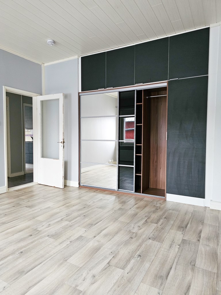 MAKUUHUONEEN KUVAUS: Lattiamatto, seinät maalattu. Vaatekomero.