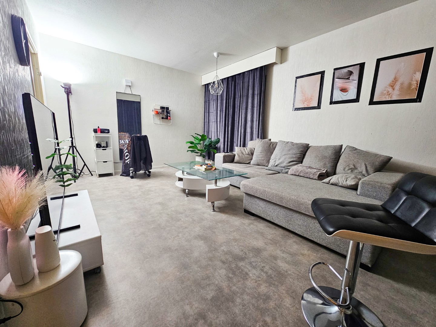 Olohuone, keittiö, makuuhuone, kylpyhuone, vaatehuone