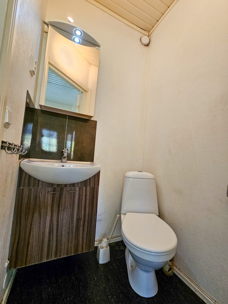 WC:N KUVAUS: Peili- ja allaskaappi, wc. Lattiamatto.