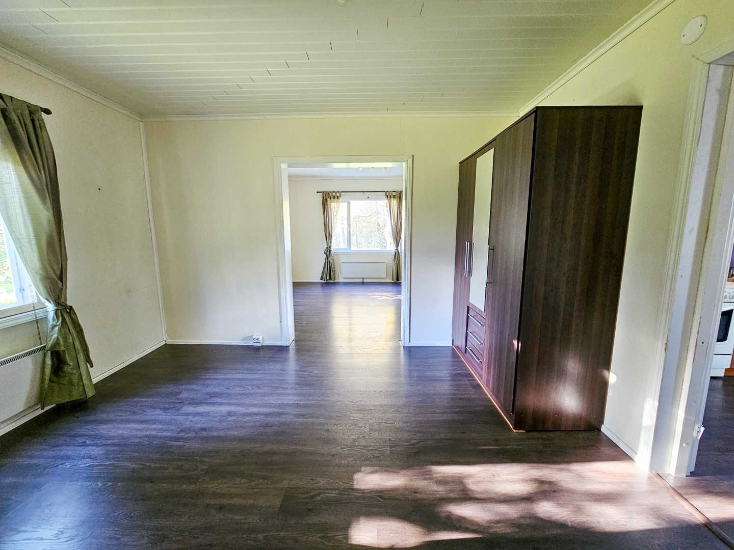 Rummen är ljusa och rymliga med fönster åt två håll som släpper in gott om dagsljus. Planlösningen, där rummen löper i fil, ger ett luftigt och inbjudande intryck. Framsidan vätter mot sydväst, vilket gör att både huset och trädgården badar i sol från morgon till kväll - perfekt för långa sommar- och höstkvällar på den egan gården.