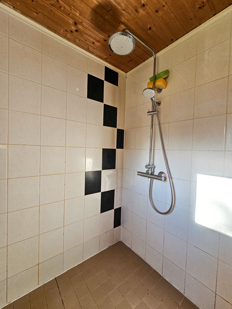 KYLPYHUONEEN KUVAUS: Suihku. Lattia laatta, seinät kaakeli.