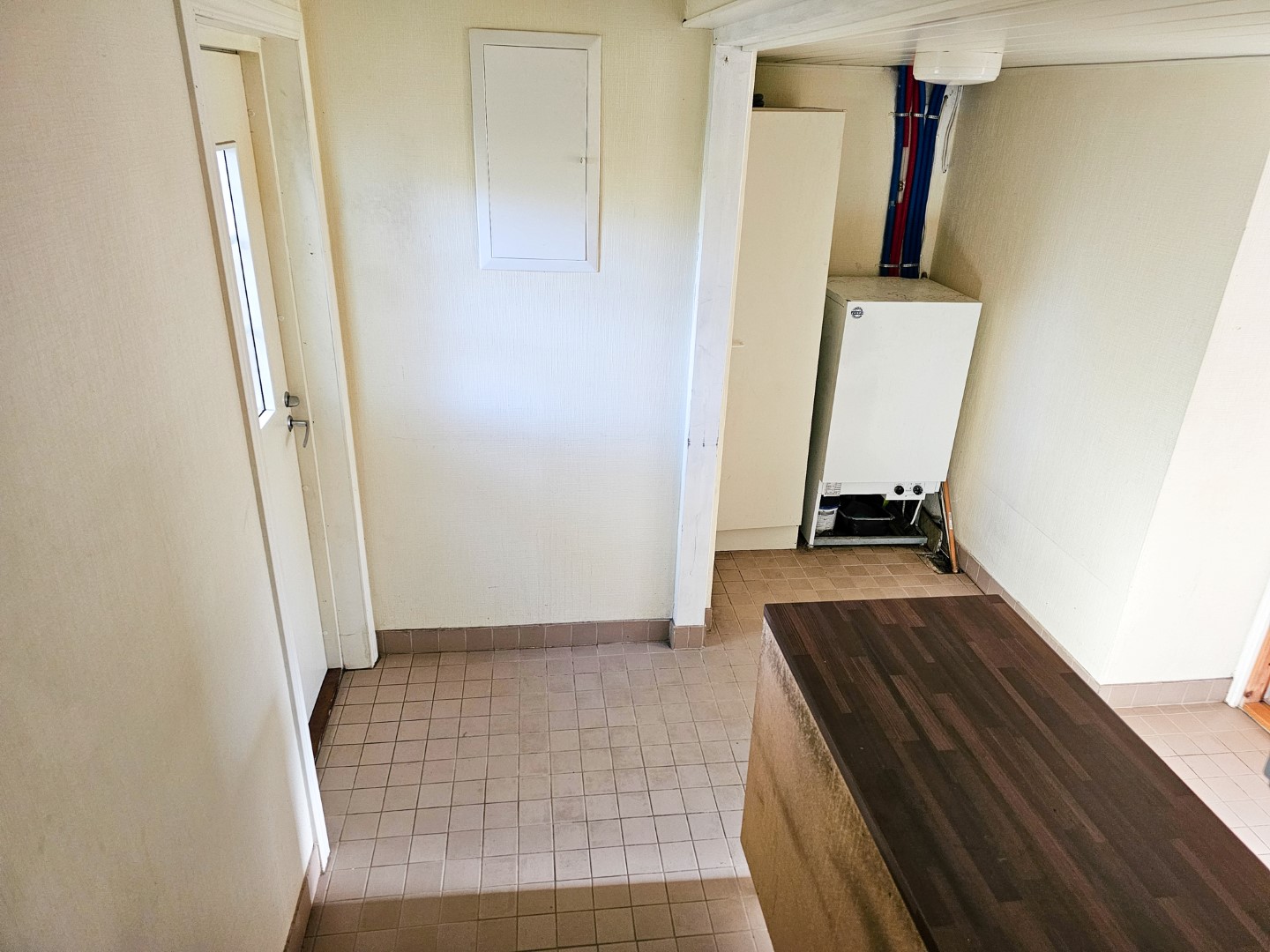 BESKRIVNING AV HJÄLPKÖK: Tvättmaskinsanslutning, varmvattenberedare, skåp. Golv klinkers.