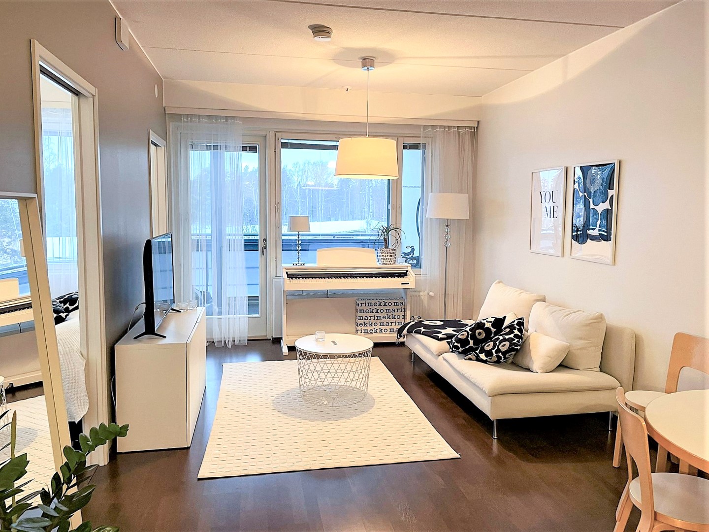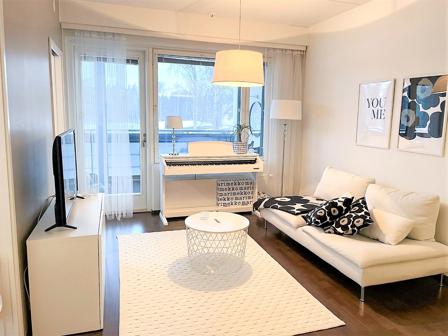 Tyylikäs kaksio saunalla ja lasitetulla parvekkeella pidetyssä Pikiruukissa